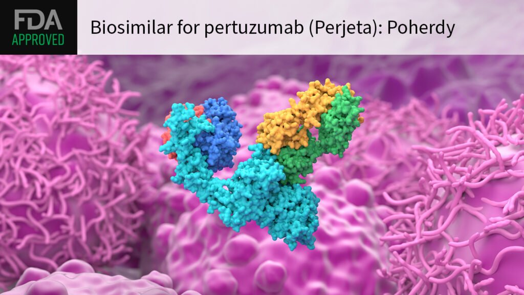 (MedPage Today) — The FDA approved pertuzumab-dpzb (Poherdy) as the first biosimilar for its reference product Perjeta, a monoclonal antibody commonly used in standard regimens for HER2-positive breast cancer.